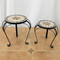Sada dvou stojanů na květiny kombinuje pevnou kovovou podnož s keramickou deskou zdobenou mozaikovým vzorem v béžových odstínech. Kovové nohy jsou tvarované do elegantních oblouků zakončených jemným zatočením, které dodává stojanům stabilitu a dekorativní vzhled. Keramická deska je snadno udržovatelná a odolná vůči povětrnostním vlivům, což umožňuje využití jak v interiéru, tak na terase či balkóně. Stojany jsou vhodné pro různé květináče a rostliny, přičemž jejich design přináší do prostoru přírodní a stylový efekt. Díky různým velikostem lze stojany efektivně kombinovat a vytvořit tak zajímavé aranžmá.