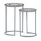 Sada dvou stojanů na květiny v šedém provedení kombinuje pevnou kovovou konstrukci s dekorativní keramickou deskou s mozaikovým vzorem. Kulaté desky zdobí geometrický motiv v přírodních odstínech šedé a bílé, který dodává stojanům výrazný vizuální efekt. Kovová podnož je navržena tak, aby zajistila stabilitu a zároveň působila vzdušně díky otevřenému tvaru s obloukovým spodním rámem. Stojany jsou vhodné pro umístění květin nebo dekorativních předmětů v interiéru i na kryté venkovní prostory. Díky různým velikostem lze stojany kombinovat a vytvořit tak zajímavou kompozici.