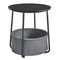 Kulatý odkládací stolek o průměru 45 cm a výšce 50 cm nabízí praktický prostor pro odložení drobností díky textilnímu koši umístěnému pod deskou. Deska je vyrobena z MDF s černým dekorem, který doplňuje černé kovové nohy s jemně zaoblenými tvary, jež zajišťují stabilitu a moderní vzhled. Textilní koš je pevný a snadno přístupný, ideální pro uložení časopisů, dek nebo jiných předmětů. Kompaktní rozměry stolku umožňují jeho využití v obývacím pokoji, ložnici či pracovně jako praktický doplněk s úložným potenciálem.
