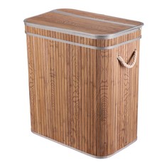 Prádelní koš z bambusu v šedém odstínu nabízí praktické a estetické řešení pro ukládání prádla. Jeho pevné bambusové lamely jsou uspořádány do vertikálního vzoru, který dodává koši přirozený vzhled a zároveň zajišťuje dostatečnou pevnost. Koš je vybaven víkem, které pomáhá udržet obsah skrytý a chráněný před prachem. Pro snadnou manipulaci slouží pevné provedení s dvěma bočními úchyty z pevného lana. Díky svému rozměru a materiálu je vhodný do koupelen i ložnic, kde se snadno udržuje a přispívá k uklizenému prostoru.
