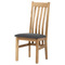 Jídelní židle s vysokým opěrákem je vyrobena z masivního dubového dřeva, které zajišťuje pevnost a stabilitu. Opěrák je ergonomicky tvarovaný svislými lamelami, které podporují správné držení těla při sezení. Sedák je čalouněný šedou látkou, která nabízí příjemný povrch a snadnou údržbu. Masivní nohy doplňují robustní konstrukci, jež je navržena pro dlouhou životnost. Židle nemá područky ani otočný mechanismus, což ji činí vhodnou pro klasické jídelní prostory s důrazem na jednoduchost a funkčnost.
