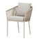 Zahradní židle s hliníkovou konstrukcí v krémovém odstínu nabízí kombinaci lehkosti a pevnosti vhodnou pro venkovní použití. Sedák a opěradlo jsou potažené rychleschnoucí látkou, která je voděodolná a odolná vůči povětrnostním vlivům, což zajišťuje snadnou údržbu a dlouhou životnost i při častém venkovním používání. Design židle je doplněn pohodlnými polštáři v béžové barvě, které zvyšují komfort sezení. Konstrukce je stabilní a zároveň lehká, což usnadňuje manipulaci a přemísťování. Rozměry a nosnost jsou přizpůsobeny běžným potřebám zahradního nábytku.