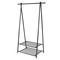 Kovový věšák na šaty v černém provedení nabízí praktické řešení pro uspořádání oděvů i obuvi. Robustní rám je tvořený práškově lakovanými trubkami, které zajišťují stabilitu a dlouhou životnost. Věšák je vybaven horní tyčí pro zavěšení oblečení a dvěma policemi s roštovou konstrukcí, které umožňují odkládání bot nebo dalších doplňků. Díky jednoduchému designu a kompaktním rozměrům se hodí do předsíní, ložnic i šaten, kde pomáhá udržet pořádek a přehlednost. Celková nosnost odpovídá pevnosti materiálu a konstrukce umožňuje snadnou montáž i údržbu.