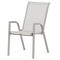 Zahradní židle v béžovém provedení kombinuje pevný rám s polywoodovými područkami v dekoru dubu, které dodávají přírodní vzhled a snadnou údržbu. Sedák a opěradlo jsou potažené odolnou síťovinou, která je příjemná na dotek a umožňuje pohodlné sezení i během teplých dnů díky své prodyšnosti. Konstrukce židle je navržena tak, aby byla stohovatelná, což usnadňuje její skladování a manipulaci. Stabilní kovová podnož zajišťuje bezpečné a pevné opření na různých površích. Díky kombinaci materiálů a designu je židle vhodná pro venkovní použití na terasách, zahradách či balkonech.