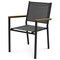 Zahradní židle s kovovým rámem v šedé barvě nabízí pevné a stabilní provedení vhodné pro venkovní použití. Sedák a opěradlo jsou potažené odolnou textilií, která zajišťuje pohodlí a snadnou údržbu. Přírodní polywoodové područky přidávají židli příjemný estetický kontrast a zároveň komfort při sezení. Díky možnosti stohování je židle praktická pro skladování a úsporu místa. Je ideální volbou pro zahradní posezení, terasy či balkony.