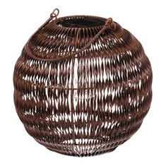 Lampión z polyratanu v příjemném světle hnědém odstínu má tvar hrušky a je vybaven LED osvětlením, které vytváří jemnou atmosféru. Provedení lampiónu je otevřené s výraznou strukturou připomínající ruční pletení, což zajišťuje zajímavý vizuální efekt světla. Praktický kožený úchyt umožňuje snadné přenášení nebo zavěšení. Velikost L poskytuje dostatek prostoru pro umístění LED zdroje uvnitř. Lampión je vhodný pro dekorativní osvětlení interiérů i venkovních prostor. LED osvětlení je napájeno 1 x AA dobíjecí baterií a zároveň solárním panelem umístěným na horní hraně.