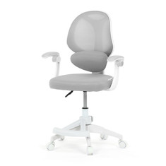 Dětská kancelářská židle s modrou síťovinou nabízí pohodlné a vzdušné sezení díky prodyšnému materiálu opěradla a sedáku. Bílé plastové nohy s pěti kolečky zajišťují stabilitu a snadnou mobilitu po různých typech podlah. Odklápěcí područky umožňují flexibilní využití prostoru, zatímco nastavitelná bederní opěrka podporuje správné držení zad během práce nebo studia. Výškově nastavitelný sedák umožňuje přizpůsobení židle aktuální výšce dítěte, což přispívá k ergonomii a komfortu. Součástí je také praktická opěrka nohou pro zvýšení pohodlí při delším sezení.