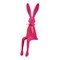 Sedící figurka zajíce v růžovém semišovém provedení z umělého plastu přináší hravý a barevný akcent do každého interiéru. Dlouhé uši a natažené nohy dodávají dekoraci charakteristický vzhled, který zaujme na první pohled. Černé oči a jemná mašle kolem krku podtrhují detailní zpracování a dodávají figurce osobitost. Je určena k posazení na rovný povrch, kde může sloužit jako originální dekorace v dětském pokoji, obývacím prostoru nebo na poličce.
