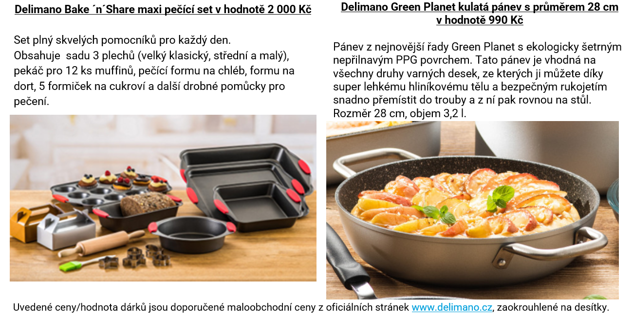 - Součástí akce jsou dva druhy dárků - maxi pečící set či kulatá pánev Green Planet