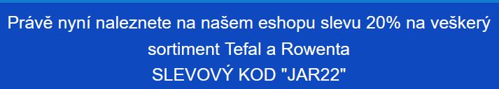 Ušetřete s Vašimi oblíbenými značkami Tefal a Rowenta až 20%. Akce se vztahuje na veškerý sortiment značky Tefal a Rowenta.