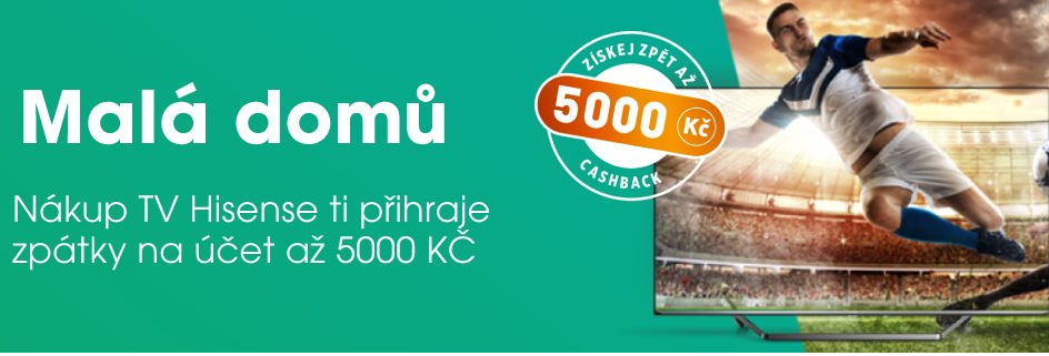 Získejte v rámci akce "Malá domů" cashback na vybrané modely televizorů HISENSE ve výši až 5 000 Kč.