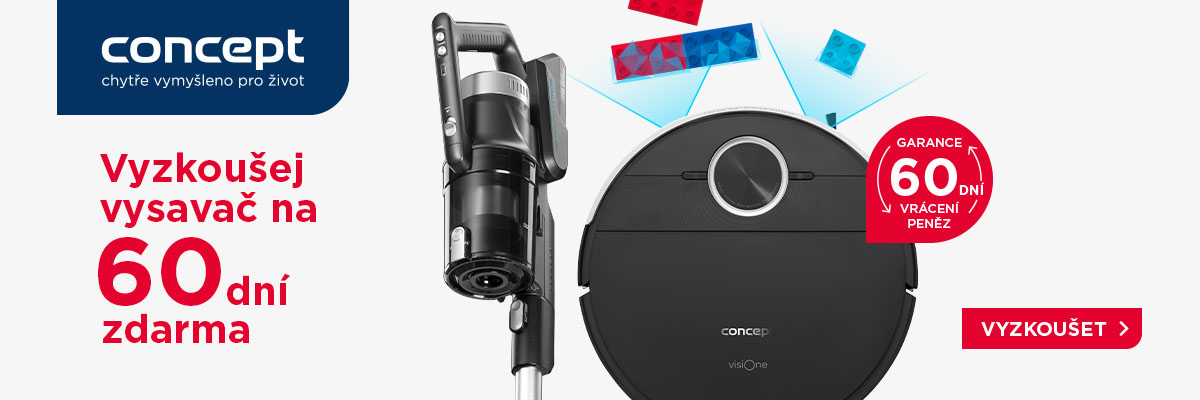 Pořiďte si tyčový či robotický vysavač, nebo kuchyňský robot CONCEPT a získejte 60 dní na vyzkoušení spotřebiče zdarma.
