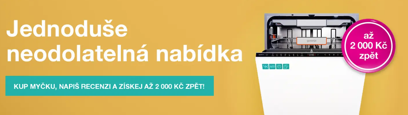 GORENJE - Cashback za recenzi myčky nádobí ve výši až 2.000 Kč