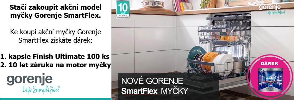 Ke koupi akční myčky Gorenje SmartFlex získáte po registraci dárek kapsle Finish Ultimate 100 ks / *zásoba 6 měsíců