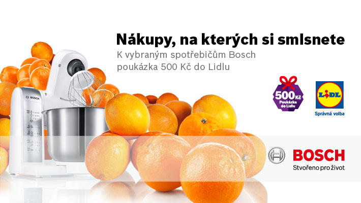 K vybraným spotřebičům Bosch poukázka 500 Kč do Lidlu