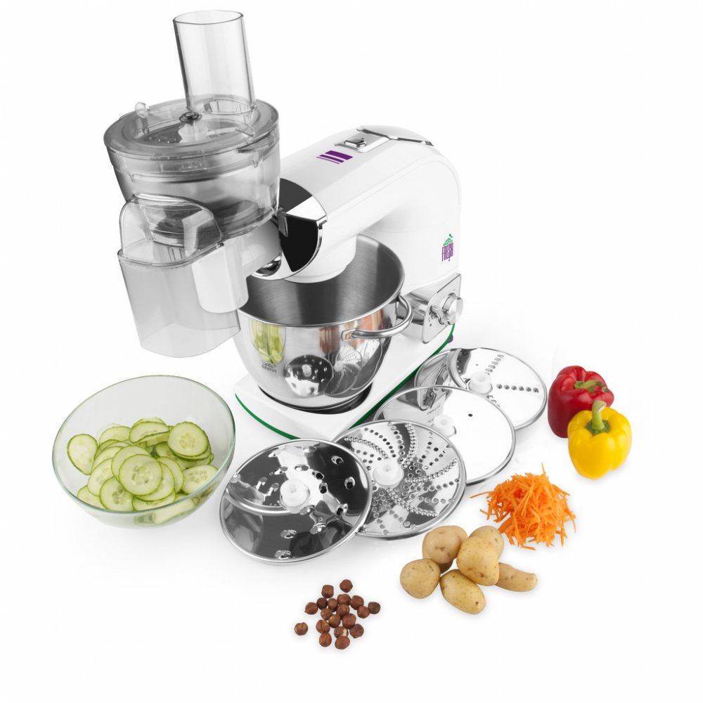 Skleněný mixér o objemu 1,4 litru vám pomůže připravit koktejl nebo krémovou polévku. Díky diskovým struhadlům velmi rychle zpracujete zeleninu, oříšky, nebo sýry. S mlýnkem na maso zvládnete připravit maso na karbanátky, hamburgery či boloňskou omáčku. Pomocí dalších nástavců můžete vytvářet uzenářské produkty, Kebbe či kouzlit vánoční domácí cukroví.