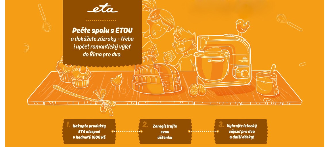 Každý účastník, který nakoupí v minimální hodnotě 1000,- jakýkoliv výrobek značky ETA, bezchybně vyplní registraci na webových stránkách www.eta.cz/pectespolu a vloží platnou účtenku, správně odpoví na soutěžní otázku, poskytne své kontaktní údaje prostřednictvím registračního formuláře a splní podmínky účasti, bude mít možnost získat jednu z výher a to do 31.3.2016.