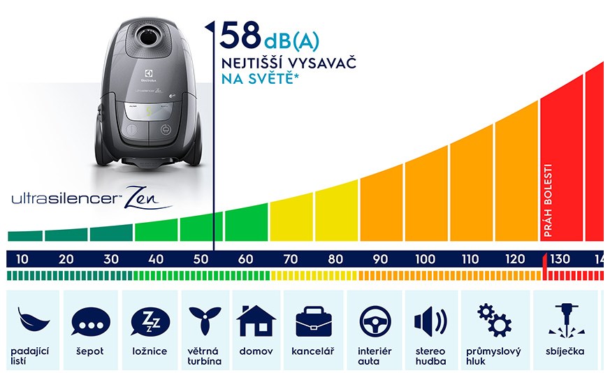 Jedná se o extra tichý vysavač se systémem Silent Zen™. Můžete vysávat, aniž byste kohokoli rušili. Díky pokroku, kterého naši konstruktéři dosáhli se systémem Silent Zen™, je vysavač UltraSilencer™ ZEN tak tichý, že při vysávání můžete poslouchat hudbu nebo se třeba dívat na televizi. Inovativní technologie izolace motoru a filtrů totiž umožňuje minimalizaci hladiny hluku a zaručuje účinné a tiché vysávání.