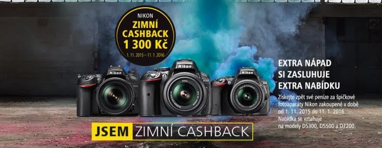 V době od 1. 11. 2015 do 11. 1. 2016 probíhá u vybraných prodejců akce ZIMNÍ CASHBACK s fotoaparáty Nikon. Při nákupu níže uvedených produktů můžete při splnění požadovaných podmínek získat část svých peněz zpět.