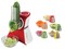 - 5 nástavců pro 5 funkcí: hrubé strouhání, jemné strouhání, tenké plátky, tenké vlnité plátky, strouhání tvrdého sýra