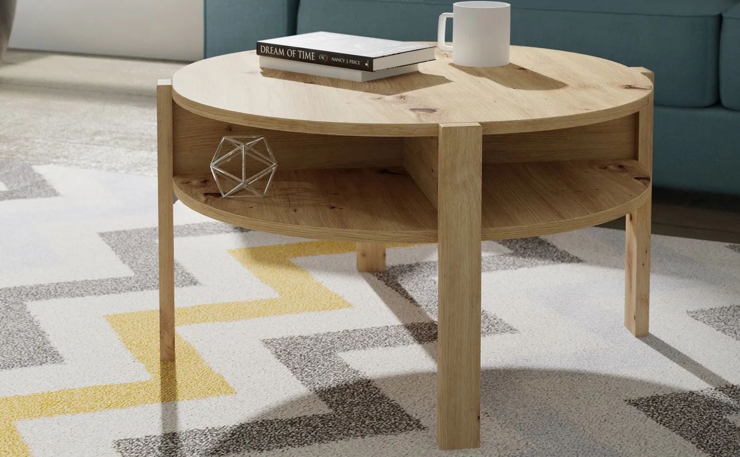 Tento kulatý konferenční stolek s policemi z kolekce Breathtaker je mořený do módního a nadčasového dekoru dub Artisan. Tato povrchová úprava se vyznačuje průhlednou kresbou dřeva, která dodává interiéru eleganci a třídu, ale také teplo a útulnost. Dekor dubu poskytuje neutrální pozadí pro ostatní barvy textilií a dekorací. Je také odolný vůči měnícím se trendům v interiéru, a proto zůstane stabilním základem pro budoucí metamorfózy interiérového designu.