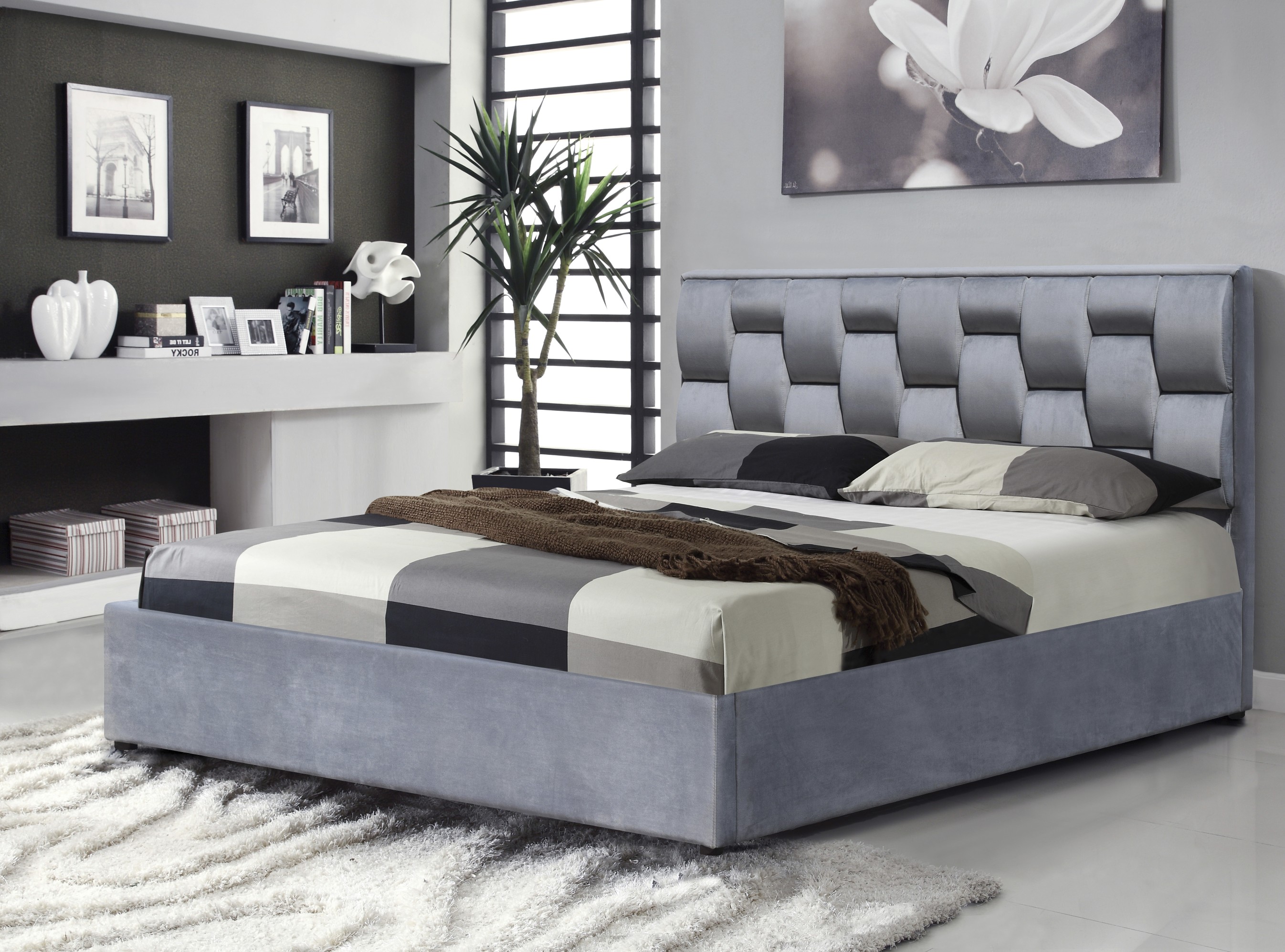 Manželská postel s úložným prostorem Halmar ANNABEL 160 šedá (3p=1szt) (3 karton)