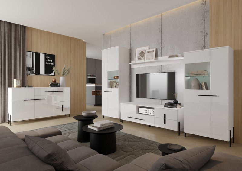 Tato moderní závěsná skříňka v bílém provedení je navržena jako praktický a elegantní doplněk do interiéru. Korpus z laminované dřevotřísky a přední plochy z mdf s pvc fólií zajišťují odolnost a snadnou údržbu. Skleněné prvky z tvrzeného skla dodávají nábytku lehký a moderní vzhled. Součástí skříňky je také integrované osvětlení, které zvýrazňuje vystavené předměty a přispívá k příjemné atmosféře v místnosti.