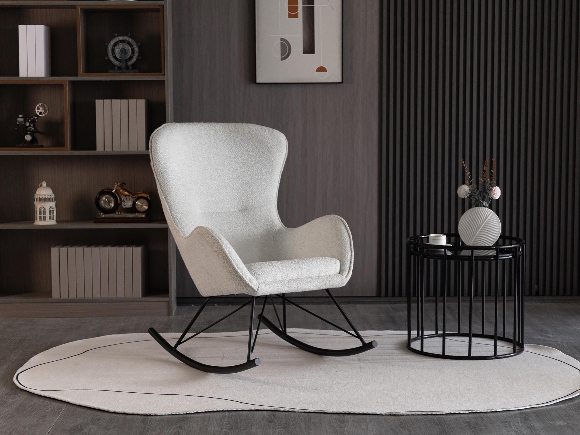 rozměry: 72/100/106/46 cm, materiál: látka - bouclé / prášková ocel, barva: čalounění - bílá, nohy - černá