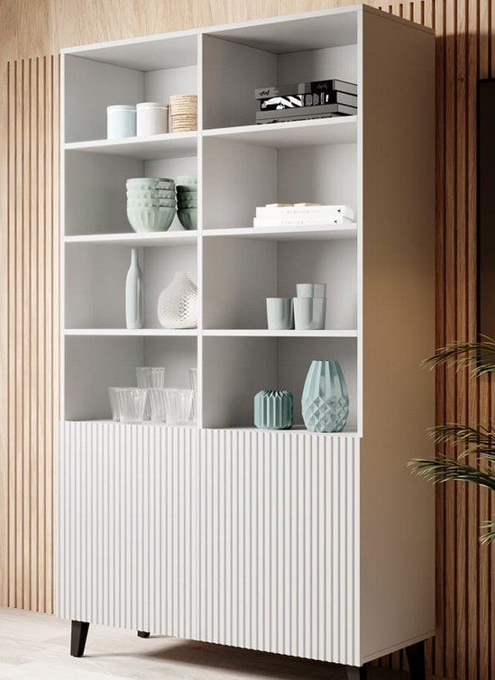 Tento moderní regál z kolekce pafos v elegantním bílém provedení nabízí čistý minimalistický vzhled bez úchytek. Díky vysoké konstrukci a deseti policím poskytuje dostatek úložného prostoru pro knihy, dekorace i další doplňky. Výklopné víko zvyšuje praktičnost používání a umožňuje snadný přístup k uloženým věcem. Regál je určen k vlastní montáži a hodí se do obývacího pokoje, pracovny i ložnice. Bílá barva v kombinaci s matným strukturovaným povrchem působí svěže, moderně a nadčasově.