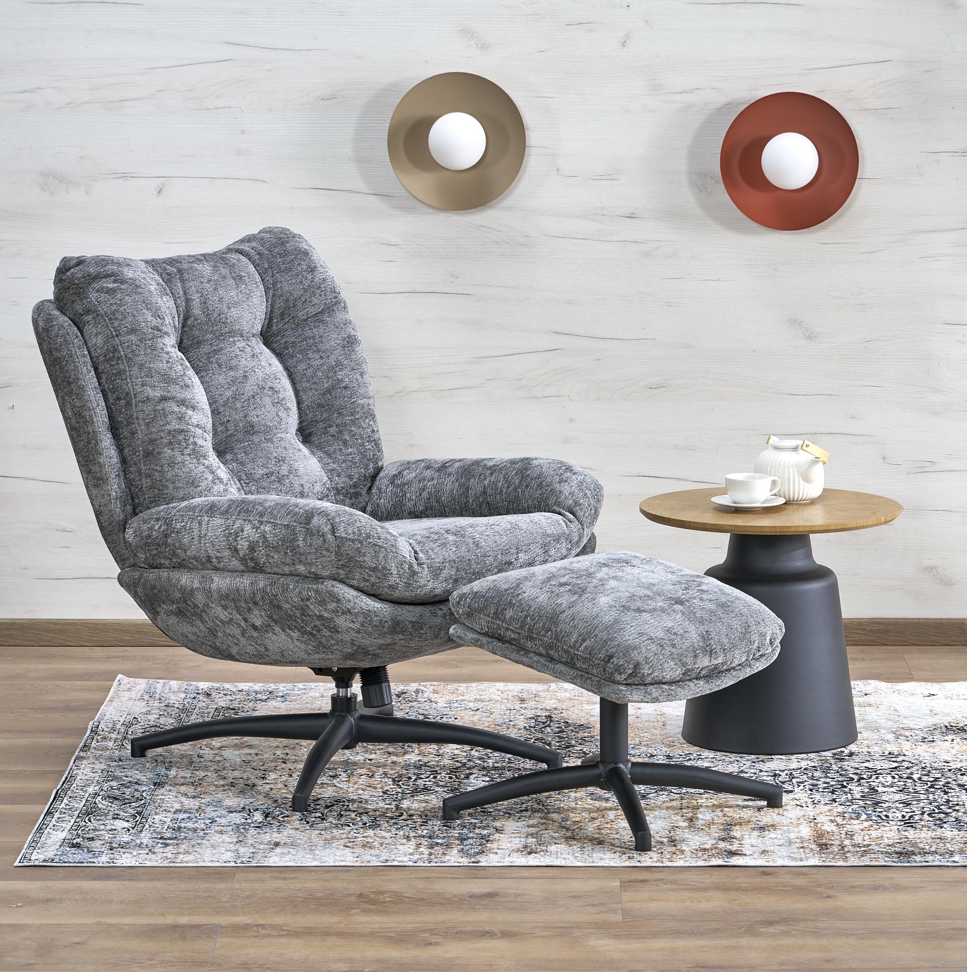 Křeslo Halmar PESTO s opěrkou nohou, funkce kolébky, popelavá