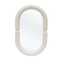 Nástěnné zrcadlo v moderně-retro stylu je elegantním a univerzálním doplňkem interiéru. Díky čisté bílé barvě a jednoduchému tvaru se snadno kombinuje s různými styly vybavení – od moderních koupelen až po předsíně či ložnice s retro nádechem.