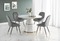Kulatý jídelní stůl v moderním glamour stylu je výrazným designovým prvkem interiéru. Stolová deska z lakovaného MDF s vysokým leskem v bílé barvě působí luxusně a zároveň se snadno udržuje. Dominantní centrální noha z chromované oceli v kombinaci bílé a zlaté dodává stolu eleganci, stabilitu a jedinečný vzhled. Díky kulatému tvaru podporuje příjemnou atmosféru při stolování a je ideální volbou do moderních a reprezentativních prostor.