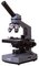 Mikroskop je vybaven monokulární hlavicí, která se otáčí o 360°. Jeho úhel sklonu je 45°. Otočný nosič objektivů má na sobě čtyři achromatické objektivy, které vytvářejí jasný a kontrastní obraz bez aberací (vad). S použitím objektivu 100x lze provádět pozorování s olejovou lázní (v sadě je obsažena láhev s imerzním olejem). Mikroskop zahrnuje funkci zvětšení v rozsahu 40 až 1600x.