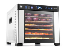 sušička ovoce • 8 sušicích plátů • příkon 500 W • regulace teploty • časovač • infračervené záření • hlučnost 47 dB • displej • objem 28,5 l • automatické vypnutí