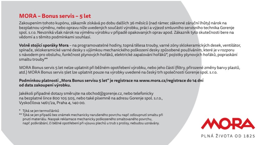 Mora Záruka spokojenosti na 5let Mora Záruka spokojenosti na 5let