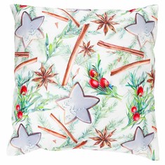 Autronic Polštář s výplní, satén. Vánoční motiv, perníček a skořice na bílém podkladu. 45 (UBR041)