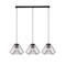 Závěsné svítidlo v industriálním stylu s kovovým tělesem v černé barvě, trojnásobnou objímkou E27 (3× max 40 W), kouřovým sklem a možností instalace nad jídelní stůl či do většího prostoru.