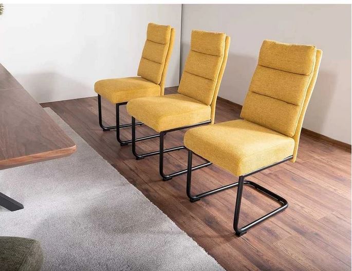Díky kombinaci výrazné barvy curry a černého rámu působí židle jako atraktivní designový prvek. Praktické madlo v zadní části usnadňuje přemisťování bez poškození látky. Konstrukce z kovu zajišťuje pevnost a dlouhou životnost, a zároveň látka Brego poskytuje pohodlný komfort sezení. Nosnost až 120 kg činí židli vhodnou pro běžné používání ve většině domácností.