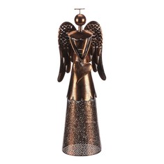 Kovový anděl ve svátečním měděném odstínu bude impozantní dekorací pro váš domov. Drží v rukou srdce jako symbol lásky a pohody, což z něj činí ideální ozdobu pro vánoční období. Má krásně tvarovaná křídla, kulatou hlavičku a spodní část šatů je průhledná, což umocňuje jeho eleganci. Díky výšce přibližně 82 cm upoutá pozornost a stane se úžasnou dominantou v každém interiéru, ať už bude umístěná na stole, komodě, okně nebo na podlaze.