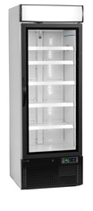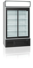 Jednodveřová chladicí skříň vhodná pro chlazení vína s nastavitelnou rozdílnou teplotou v horní a dolní části.